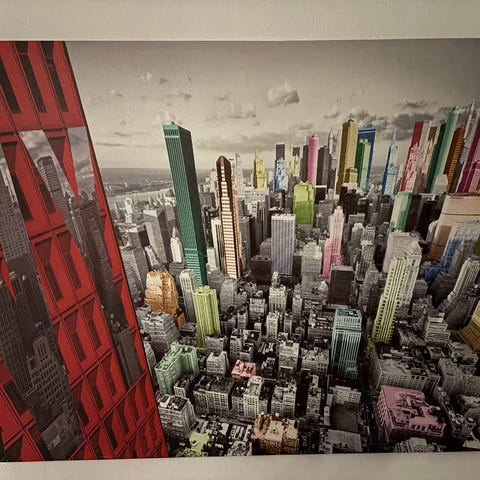 Plakat med detaljeret kort over New York. Plakaten er monteret i en enkel ramme. Der er et hjørne af plakaten som er løs, se billede🌸
