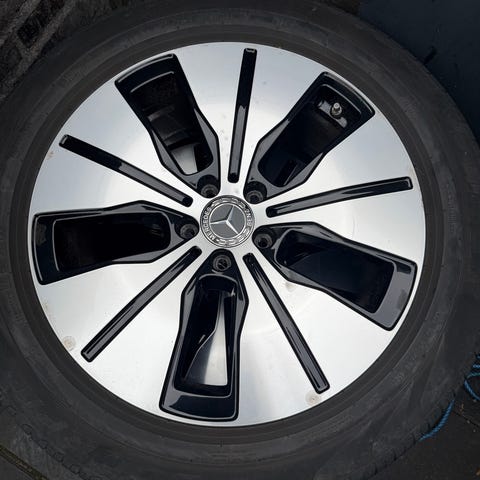 19 tommer fælge og dæk. Kun kørt en sommer masser af gummi på, har siddet på Mercedes 350 se mål på billede. Står super flotte dog overfladisk kantkys på et af fælgene. Se billede. Der er påsat TEMP ventiler. Nypris 16.800kr