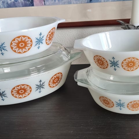 8 stk vintage pyrex skåle/ ovnfaste fade / retro skåle/fade