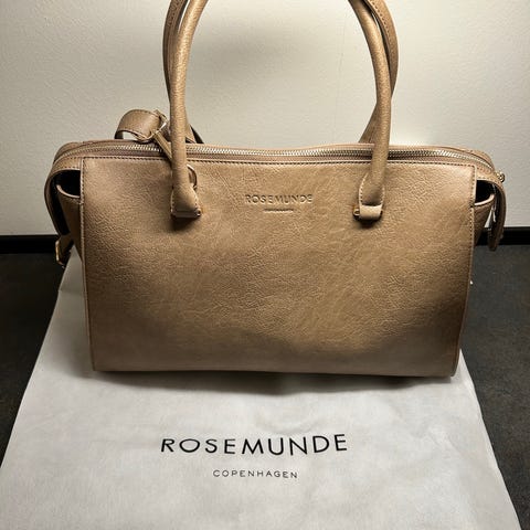 Rosemunde shopper taske i kunstlæder til kvinde. Tasken er i en grøn nuance med præget Rosemunde-logo på forsiden. Modellen har to lange hanke til skulder- eller håndbæring. Indvendigt er der et stort rum med mindre lomme og rem med krog til nøgler eller pung. Velegnet som hverdagstaske eller arbejdstaske med plads til fx dokumenter og mindre personlige ejendele.