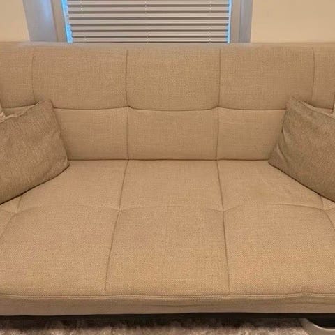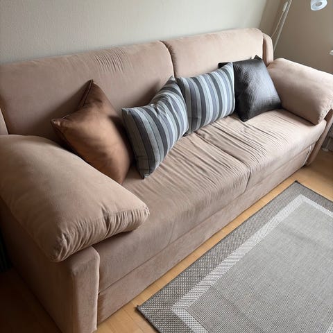 Fin sovesofa. Muligvis fra jysk. Ikke brugt meget. Fejler intet. Egetræsben.