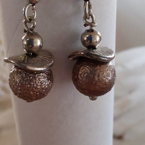 Håndlavede øreringe. Franske ørekroge med metalperler, der har oxyderet look.
