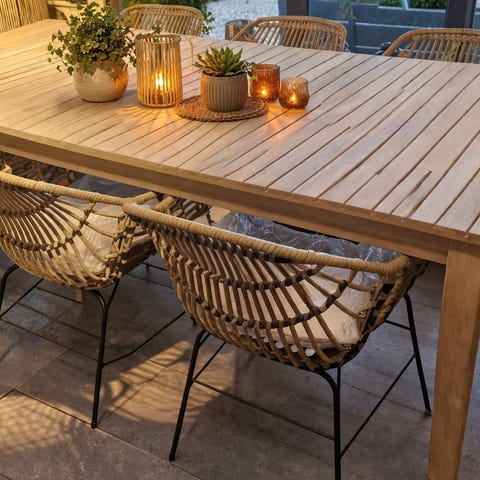 - Vi anbefaler, at du beskytter dine udendørs møbler med et vandtæt overtræk for at sikre, at de forbliver smukke.