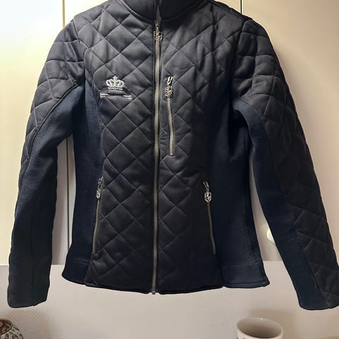 Auken House quiltet vest i sort. Vesten har gennemgående lynlås foran og to lynlåslommer. Den er let vatteret med diamantquiltet mønster og har stående krave. På forsiden er der broderede detaljer og talmotiv. Velegnet som ekstra lag over trøjer eller skjorter i overgangsvejr.