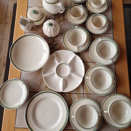 Kopper, 9 sidetallerkener, 1 flødekande m låg.