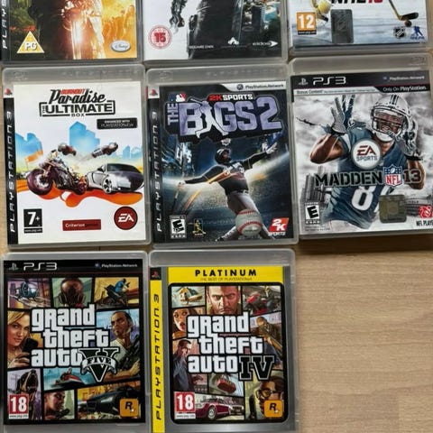 Playstation 3 spilpakke med fire titler: Bionic Commando, Tekken 6, Grand Theft Auto V og Need for Speed Most Wanted. Spilene leveres i deres originale PS3-covers med trykte omslag. Pakken indeholder både action-, kampspil-, open world- og racingspil, som kræver en Playstation 3 konsol for at kunne spilles. Aldersmærkning varierer mellem PEGI 16 og PEGI 18 afhængigt af titel.