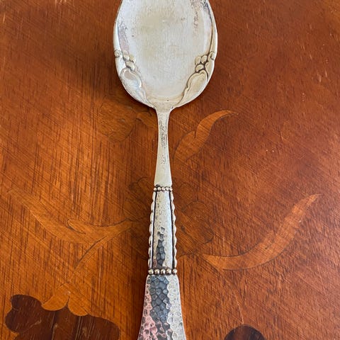 Tretårnet kage- eller tarteletspade i ubekendt mønster med hamret overflade og perlestafferet greb