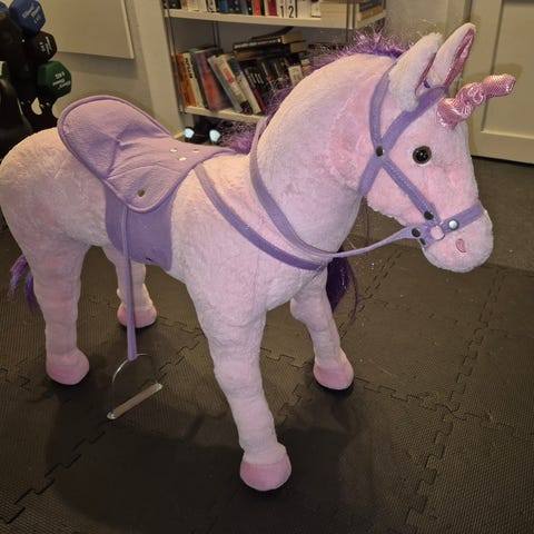 Hestecyklen PonyCycle her er et gigantisk internationalt hit. Vi har dem i flere varianter, og de flyver ud af butikken, hurtigere end vi kan sige "Vrinsk". Den er patenteret, og vi har ventet længe på at få dem hjem til vores kære kunder.