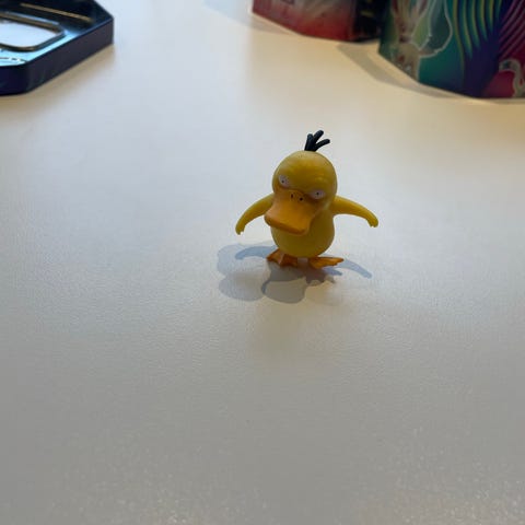 Pokémon Growlithe figur. Lille plastikfigur i orange og gule farver med sorte striber, formet som Pokémon-karakteren Growlithe. Egnet som samlerobjekt eller legetøjsfigur til leg og udstilling.