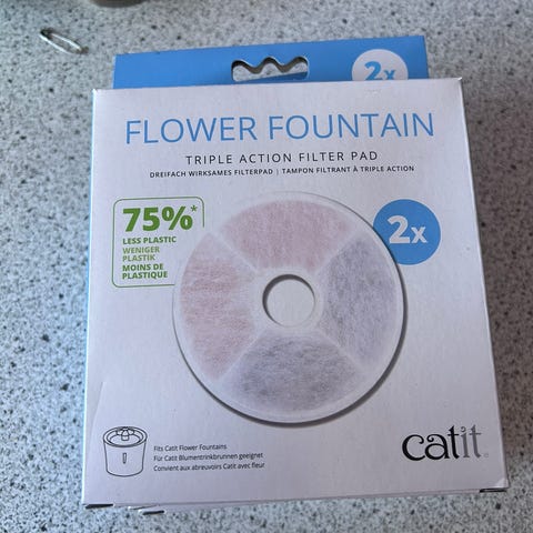Kattefontaine. Virker super. Viser når filter skal skiftes