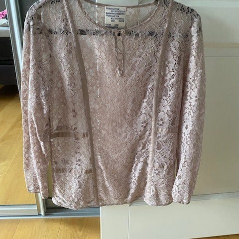 Bluse, Baum und Pferdgarden, str. 40, Råhvid, God men brugt, Flot råhvid blondebluse fra Baum und Pferdgarden sælges i flot stand
