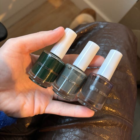 GOSH øjenskyggekrukker i sæt med flere forskellige farver. Øjenskyggerne er i små glasbeholdere med sort låg. Farverne spænder fra neutrale nuancer til mere farverige toner. Velegnet til øjenmakeup, hvor der ønskes mulighed for at variere udtryk og kombinere forskellige farver.
