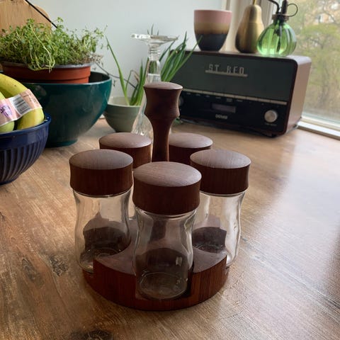 Fin krydderihylden til at hænge op eller til at stå på bordet. Længde 42 cm, høj 14 cm, dyb 7 cm.