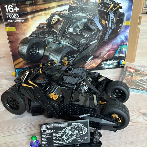 LEGO DC Batman Tumbler byggesæt med køretøj og minifigurer. Sættet indeholder Batmans Tumbler i sort samt Batman-minifigur og en ekstra minifigur i jakkesæt med tilbehør. Batman minifiguren er ikke den 100% originale, da den har et gult logo på brystet i stedet for sort.
