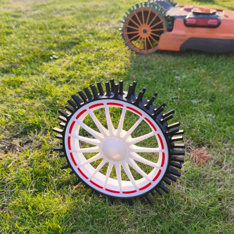 Worx off-road hjul er velegnet til hældninger, da hjulene har en pigget slidbane for mere greb til robotplæneklipperen, så den ubesværet kan klare stejle skråninger/hældninger på op til 44,5% (24°).