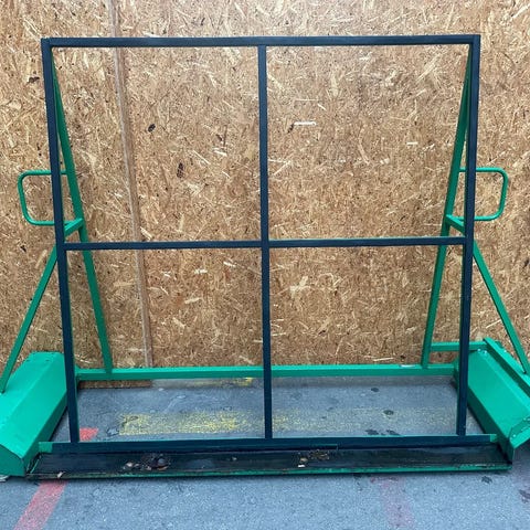 Kan trille gennem døre med flere hundrede kilo plade på lodret, hvorefter man så tipper og har dem vandret.