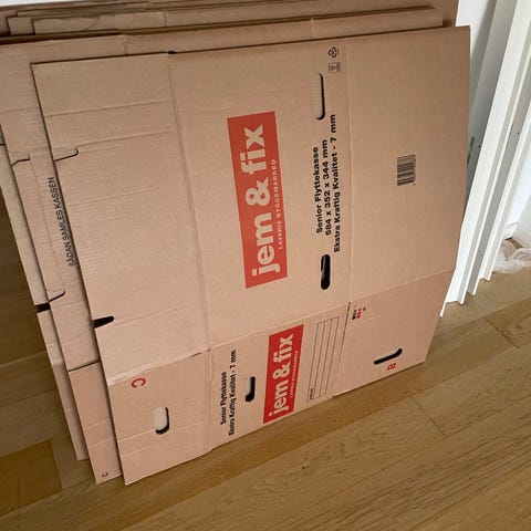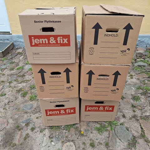 7 flyttekasser i perfekt stand, uden at det er skrevet på dem gives gratis.