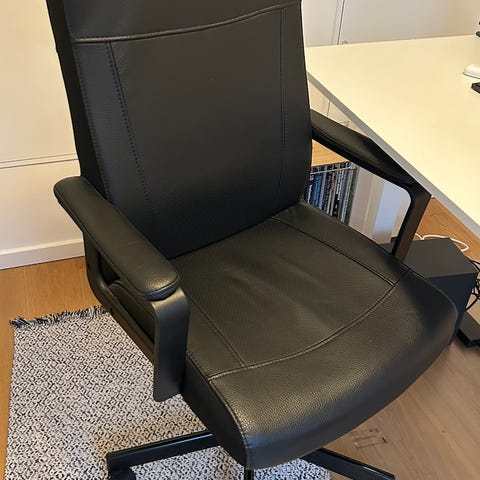 Kontorstol med meshryg og polstret sæde, der giver optimal støtte og komfort til lange arbejdssessioner.