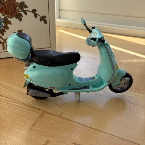 Barbie bil med plads til to dukker. Bilen er åben med to sæder og et baggagerum. Fremstår pænt!