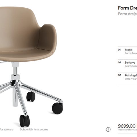 Den er behagelig at sidde i, både til arbejde og studie, og fungerer perfekt som skrivebordsstol. Stolen kan justeres i højden og har hjul, så den er nem at flytte rundt.
