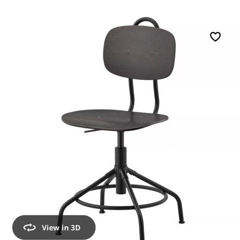 Sælger en sort kontorstol fra IKEA. Stolen har et enkelt og stilrent design, som passer ind i de fleste hjem eller kontorer.