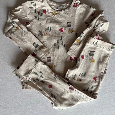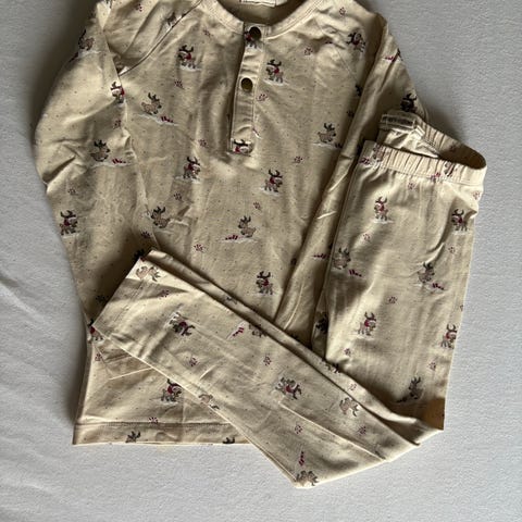 Konges Sløjd blødt og fint julesæt i printet Luna i størrelse 80. Med langærmet body og leggings/bukser. 95% økologisk bomuld, 5% elastane. Brugt sparsomt. Kun vasket i neutral vaskemiddel.