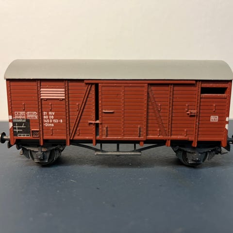 LILIPUT laver de mest naturtro H0 godsvogne - og her er en af dem i æske. En DB vogn, som helt sikkert har været forbi Danmark. Med DC hjul. Se også mine andre modelsalg.