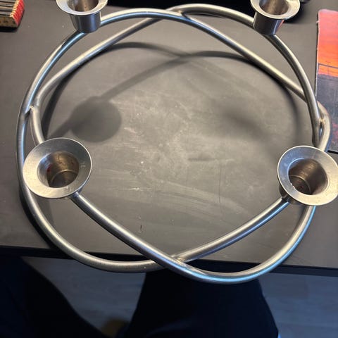 Georg Jensen advents lysestage i stål. Rund stage med fire holdere til kronelys udført i et flettet, organisk design. Velegnet som borddekoration eller adventslysestage. Materiale fremstår som blankt metal/stå