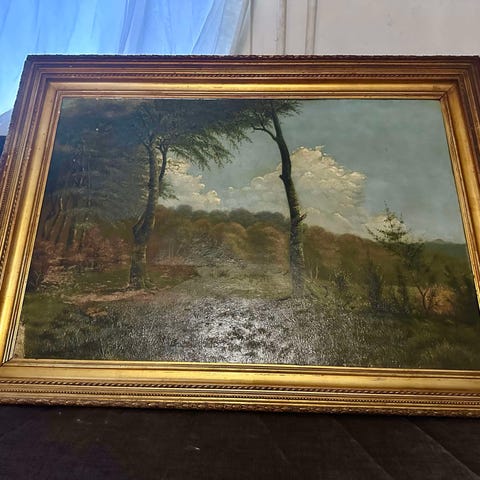 Oliemaleri, b: 76 h: 57, Hvem har malet det? Sø og skov motiv