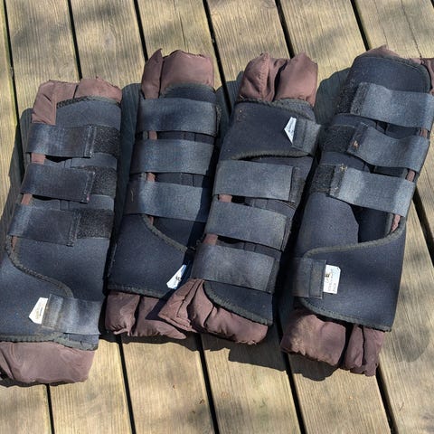 Showmaster gamacher med kunstpels i størrelse M. Sæt med fire gamacher, foret med blød kunstpels indvendigt og med ydre i robust materiale. Lukkes med velcrostropper. Velegnet som beskyttelse af hestens ben ved ridning eller træning.