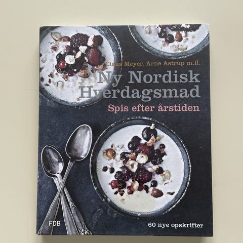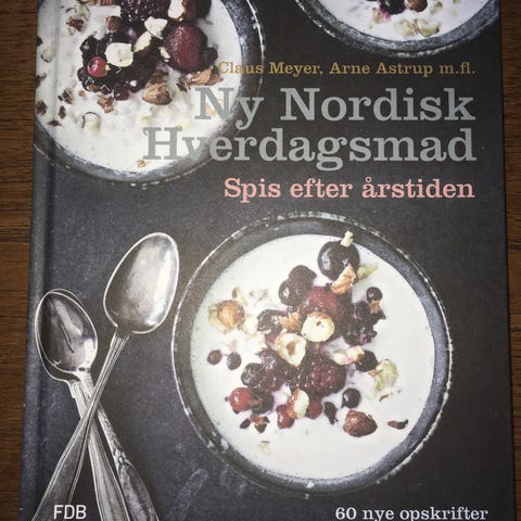 FDB Ny nordisk hverdagsmad kogebog med opskrifter af bl.a. Claus Meyer og Arne Astrup. Bogen indeholder 60 opskrifter med fokus på årstidens råvarer og nordisk hverdagsmad. Indholdsfortegnelsen er opdelt i kapitler om fx frugt, bær, korn, vinter og opskriftsregistre. Hårdt omslag og gennemillustreret med farvefotos af retterne samt trin-for-trin beskrivelser af fremgangsmåderne.