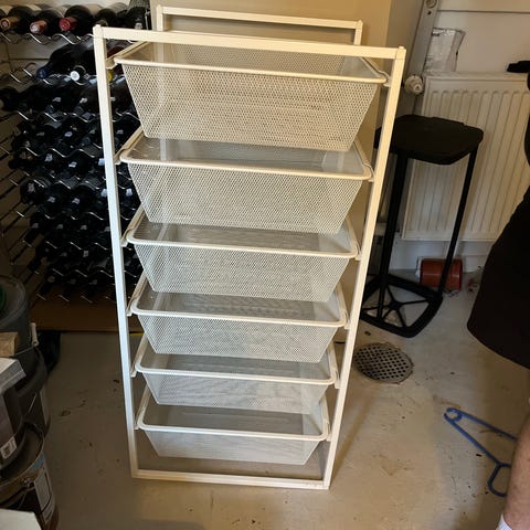 JONAXEL system med trådkurve. En sektion med 4 kurve 150kr stk. Har 2 stk med netkurv og 3 stk med trådkurv. Næsten nye.