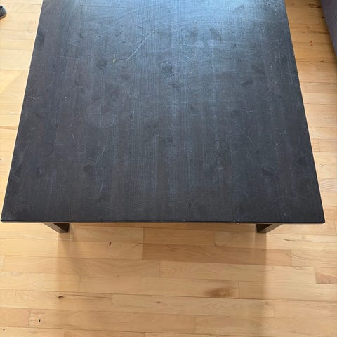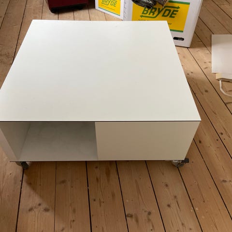 Bordet har et par slidmærker som vist på billede 4, og benene er en smule vakkelvoren - det står dog stadigt stabilt. Derfor sælges det billigt.