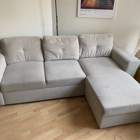 Pæn og rummelig chaiselong sofa sælges. Perfekt til både afslapning og gæster.