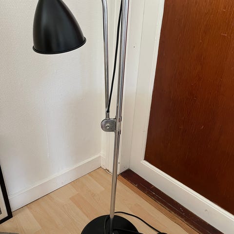 Gubi Bestlite gulvlampe designet af Robert Dudley Best. Gulvlampen er udført i messing med rund fod, slank stander og buet arm med justerbar skærm. Lampen er i fin stand - bemærk at der er lidt malerpletter på ledningen- den kan skiftes hvis man synes, men man lægger ikke mærke til det synes jeg. Pris er sat derefter.