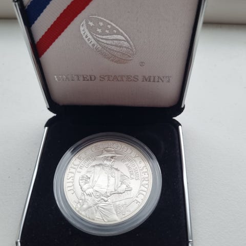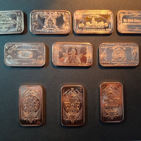 USA Liberty Eagle mønt i kobber på 1 ounce. Den ene side viser en ørn med skjold, pile og olivengren, og teksten angiver vægt og finhed. Den anden side viser Frihedsgudindens hoved omgivet af stjerner. Mønterne leveres i plastbeholdere, har 2 rør af 20 i hver 800kr pr rør