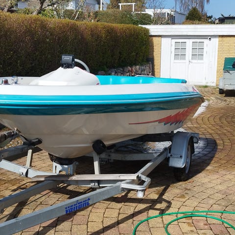 Ældre båd med massere af udstyr, 3 batterier elsystem fishfinder, og gps med der virker. Og Holder til ekstra motor.