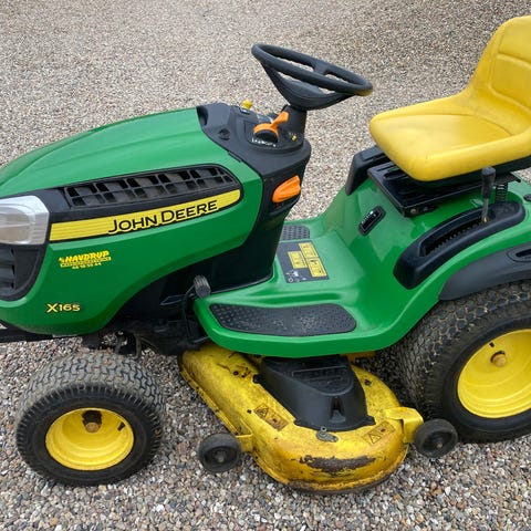 John Deere 318 havetraktor med klipperbord og sneskraber