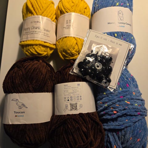 Pakken indeholder forskellige farver og struktureret garn, som kan bruges til diverse strikke- og hækleprojekter. Alle oplysninger om vægt, løbelængde og materialer er baseret på de synlige banderoler på billederne.