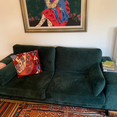 Smuk sofa i flaskegrøn velour