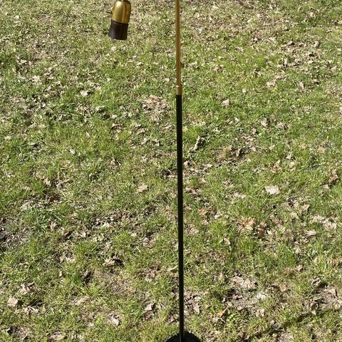 Standerlampe, Retro standerlampefra 60'erne i sort metal med messing kant under fatning