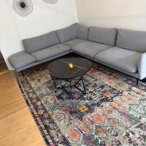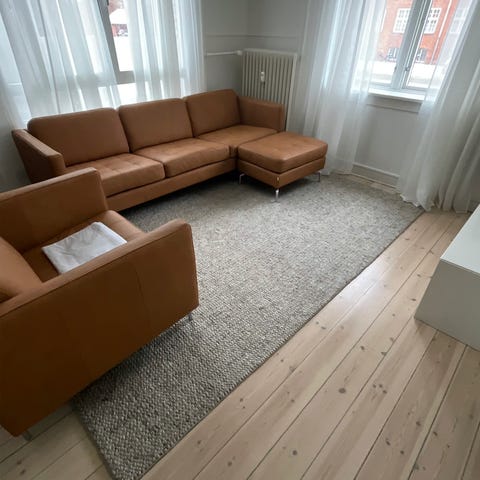 Afhentning i Christianshavn. IKEA tæppe med klassisk, detaljeret mønster i lyse og neutrale nuancer. Tæppet egner sig til brug i stue eller andre opholdsrum og kan placeres under sofa- eller sofabord. Velegnet til at skabe en blød og behagelig overflade på trægulv eller andre hårde gulve.