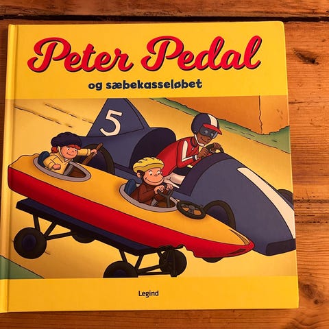Ældre, lille bog med Peter Pedal. Bogen består af illustrationer og få ord og er i tykt pap. Oplagt som pegebog og til at fortælle historier ud fra.