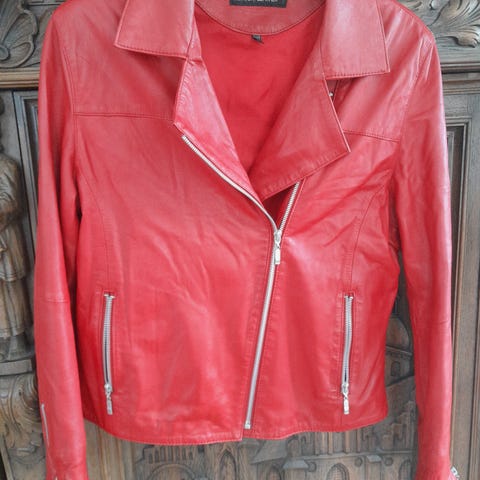 Broch leather jakke rød str. L dame
