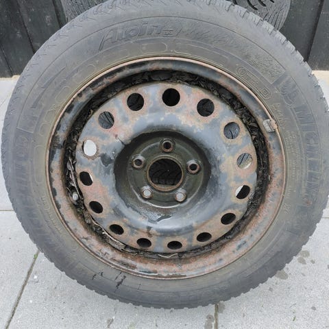 Sælger disse stålfælge hjul, alle burde være lovlige, med omkring 2mm tilbage.