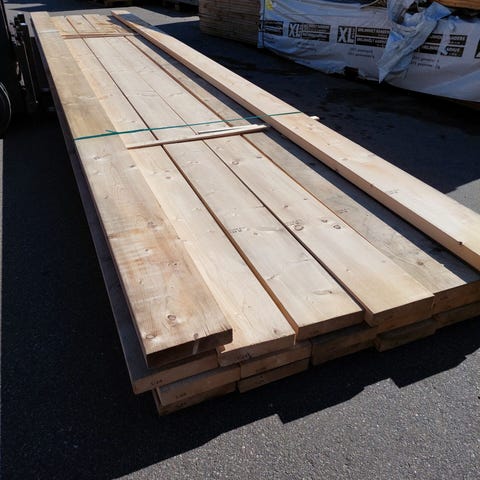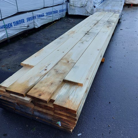 Spærtræ C24 45x295x4800mm. Træet har stået ude og kan have misfarvning efter vind og vejr. Bliver nu opbevaret inde og er fint tørt. Prisen er 56 kr pr Lbm. Mål:L4800B295xH45mm.