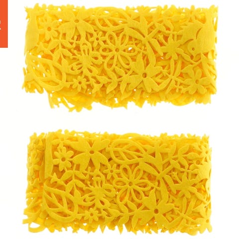 Sæt af 7 gule servietringe, hver med en diameter på 8,5 cm. Fremstillet af garn med en dekorativ hæklet mønster rundt om åbningen. Perfekte til borddækning som giver et farverigt og unikt touch.
