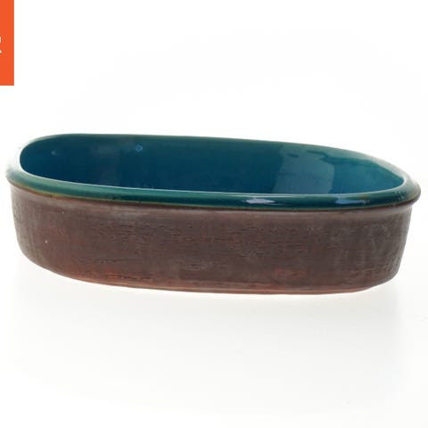 Keramisk skål med en diameter på 29 cm. Skålen har en glaseret, dybblå farve og en dekoration i bunden med et reliefmønster. Bagsiden af skålen viser påskriften 'Denmark' samt et serienummer.