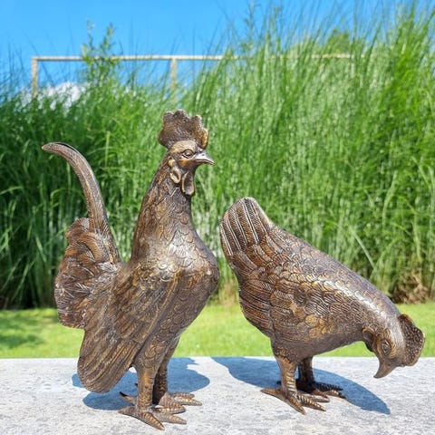 Statuette - A metal chicken - Jern, Metal