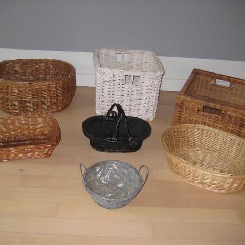 Kurv, fin aflang kurv med håndtag.